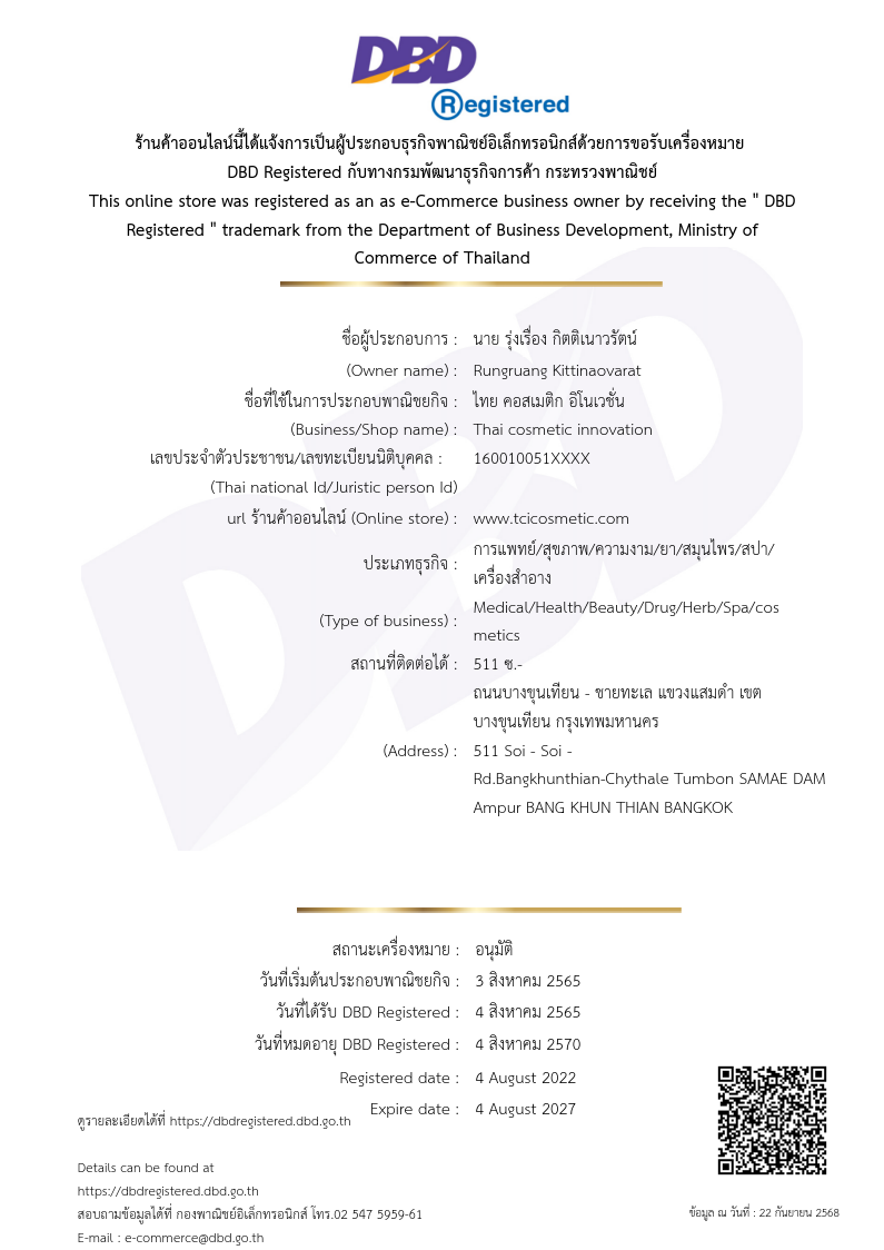 - หน้าร้าน TCI cosmetic ตั้งอยู่ที่ 511 ถนนบางขุนเทียนชายทะเล แขวงแสมดำ เขตบางขุนเทียน กทม. 10150 โทร 082-7884982, 085-0516226