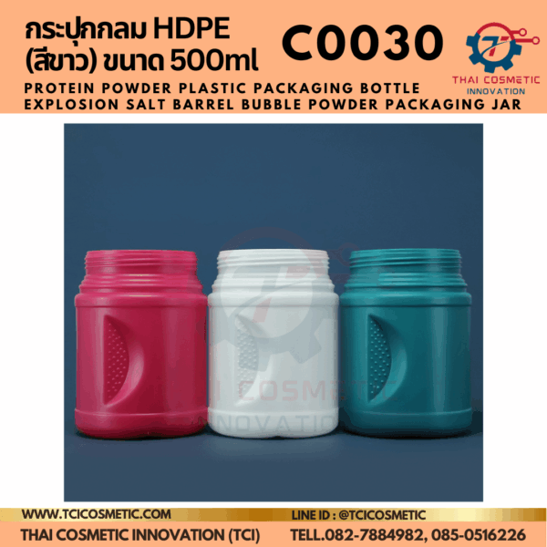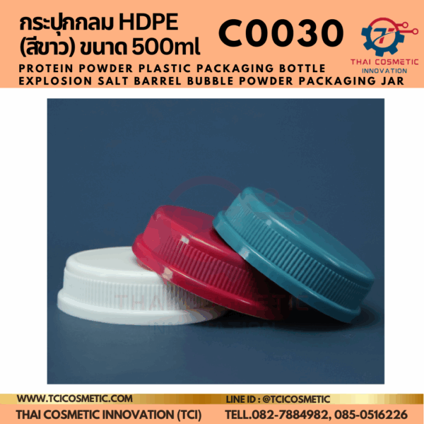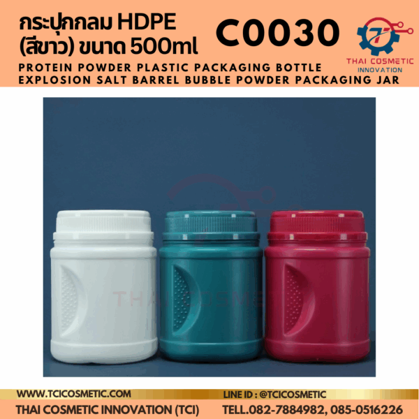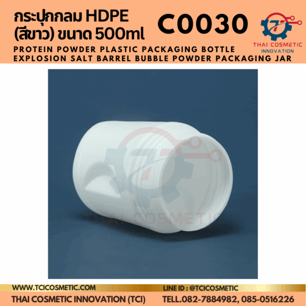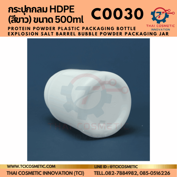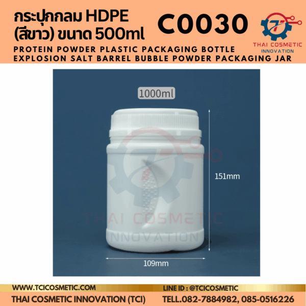 กระปุกกลม HDPE (สีขาว) ขนาด 500ml C0030