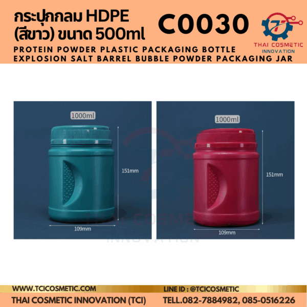 กระปุกกลม (สีขาว) ขนาด 500ml/1000ml