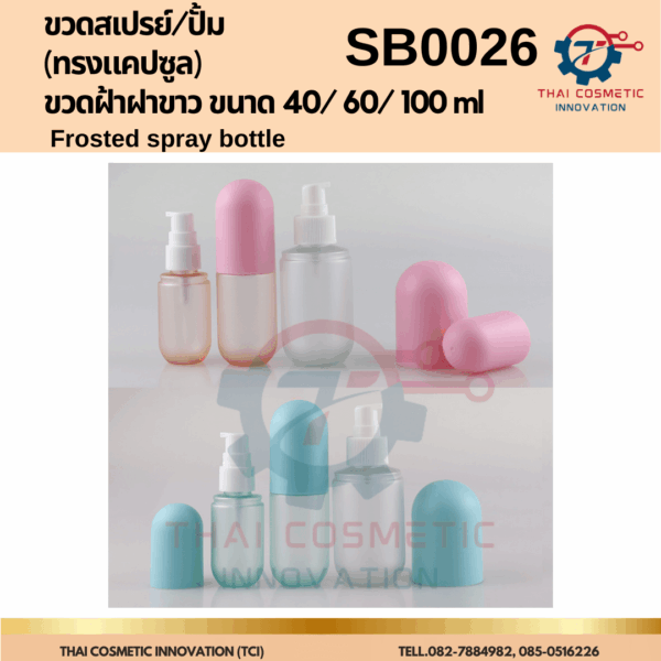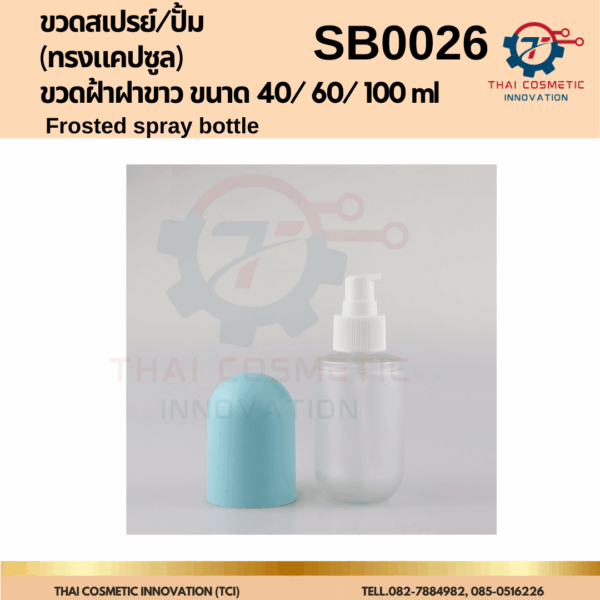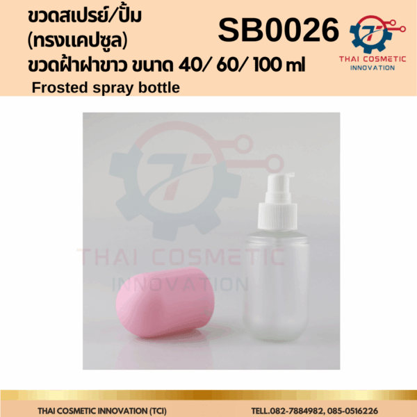ขวดสเปรย์/ปั้ม (ทรงแคปซูล) ขวดฝ้าฝาขาว SB0026