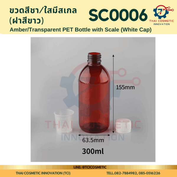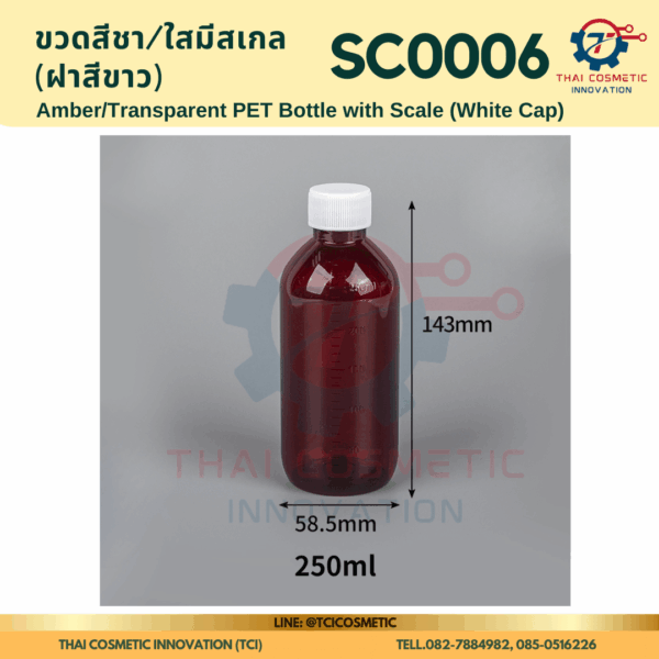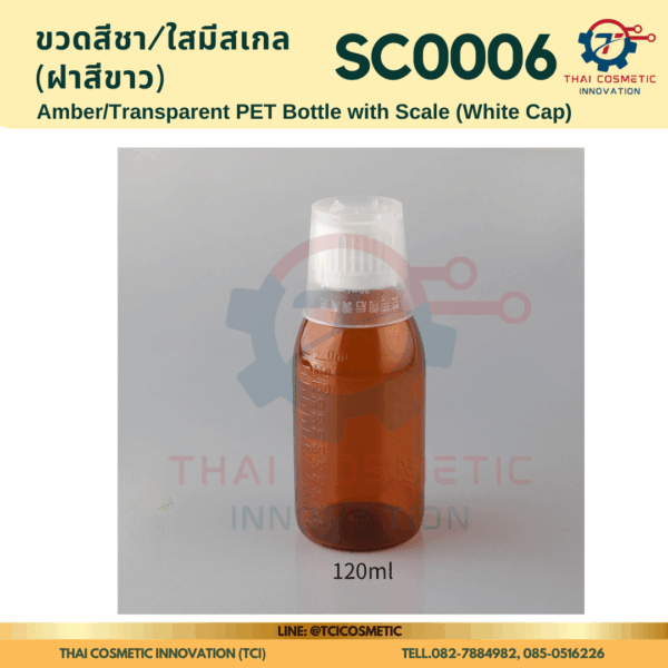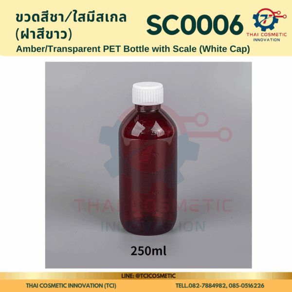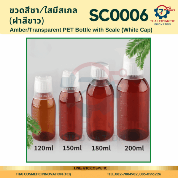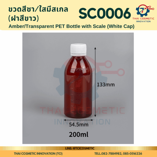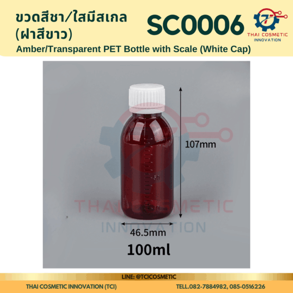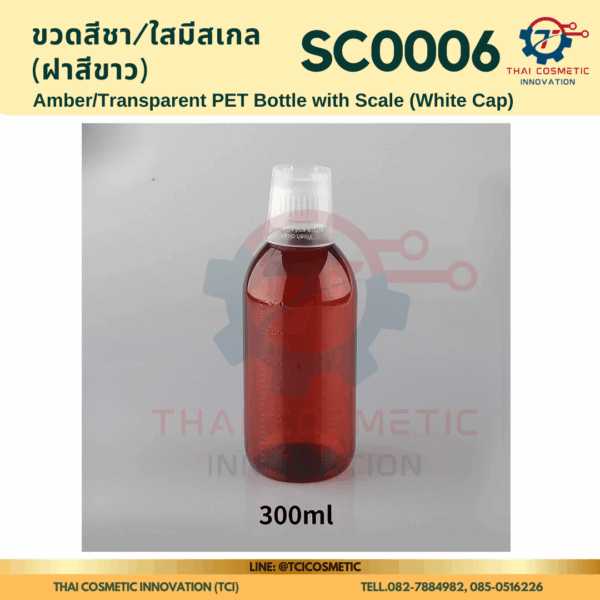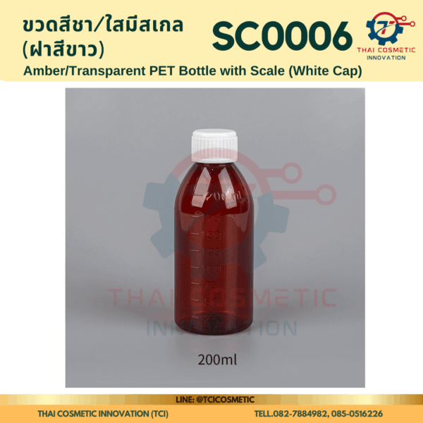 ขวดสีชา/ใสมีสเกล(ฝาสีขาว) SC0006 ขวดสีชา/ใสมีสเกล(ฝาสีขาว) ขวดสีชา/ใสมีสเกล SC0006  SC0006 Amber/Transparent PET Bottle with Scale (White Cap)