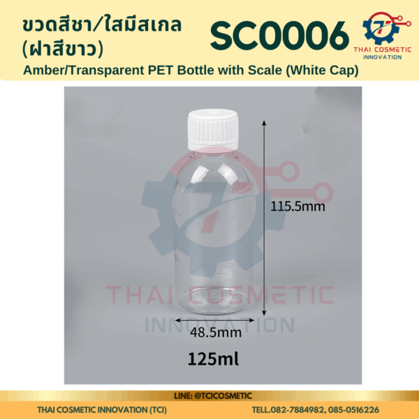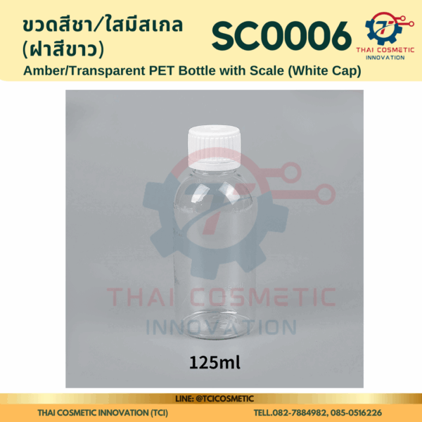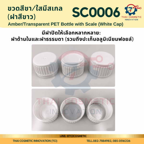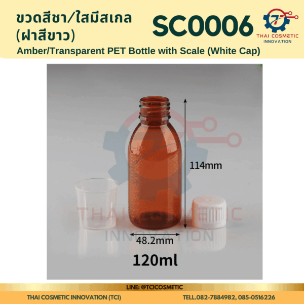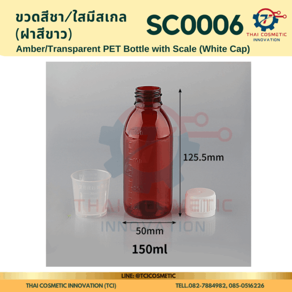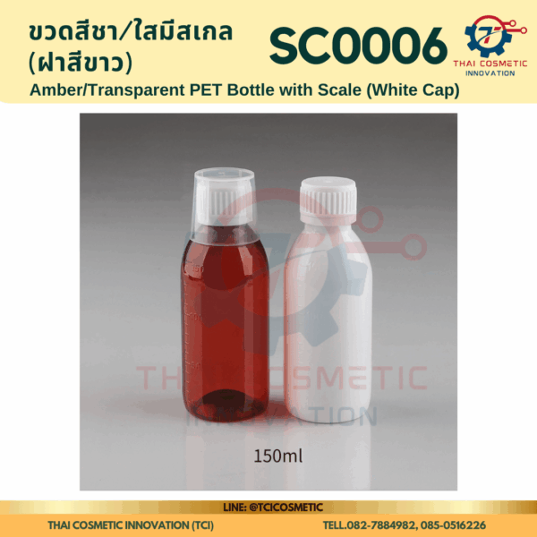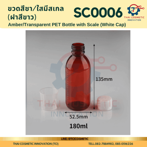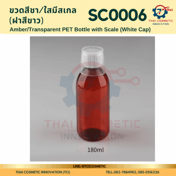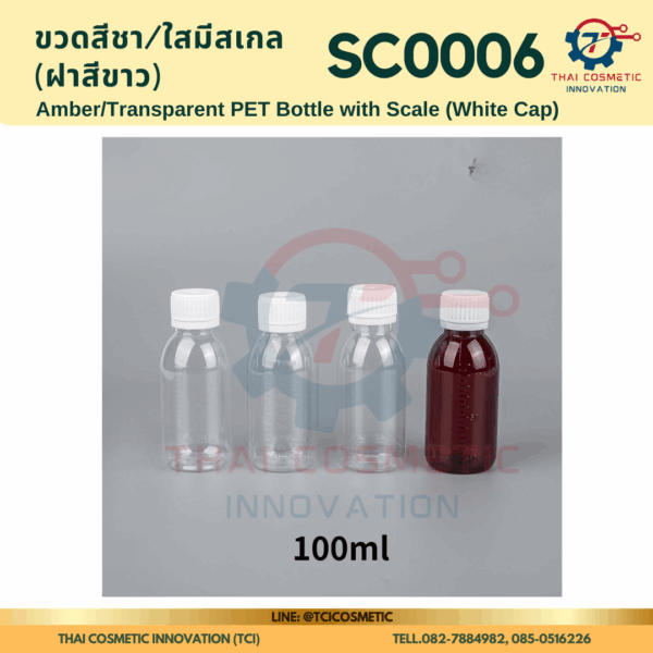 ขวดสีชา/ใสมีสเกล(ฝาสีขาว) SC0006 ขวดสีชา/ใสมีสเกล(ฝาสีขาว) ขวดสีชา/ใสมีสเกล SC0006  SC0006 Amber/Transparent PET Bottle with Scale (White Cap)