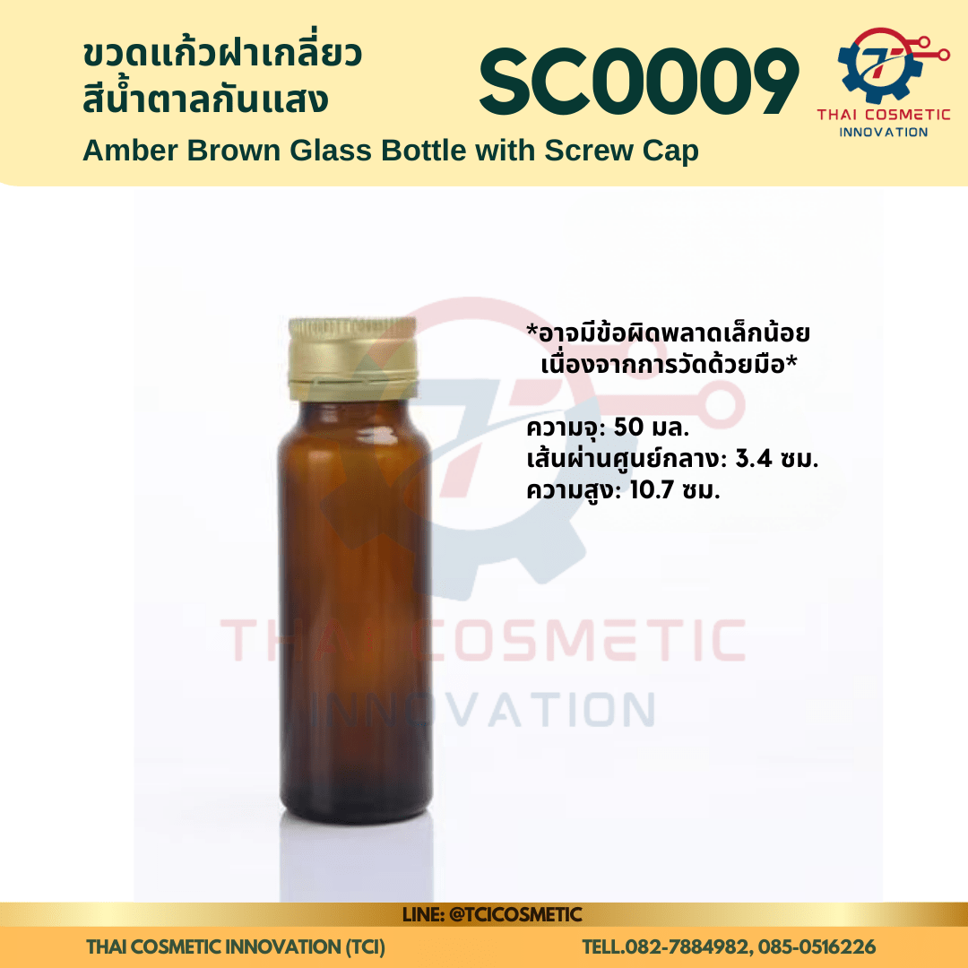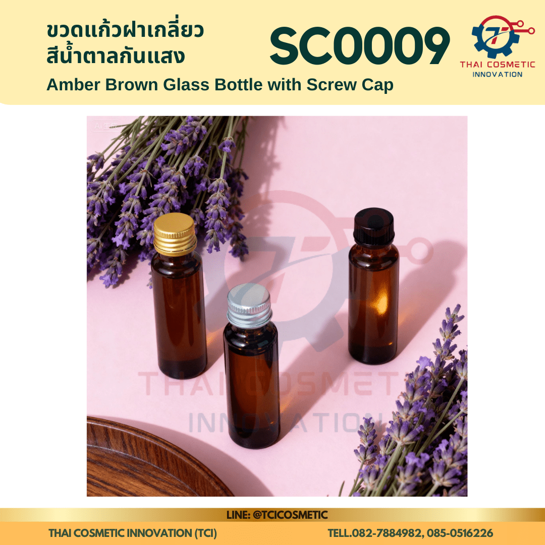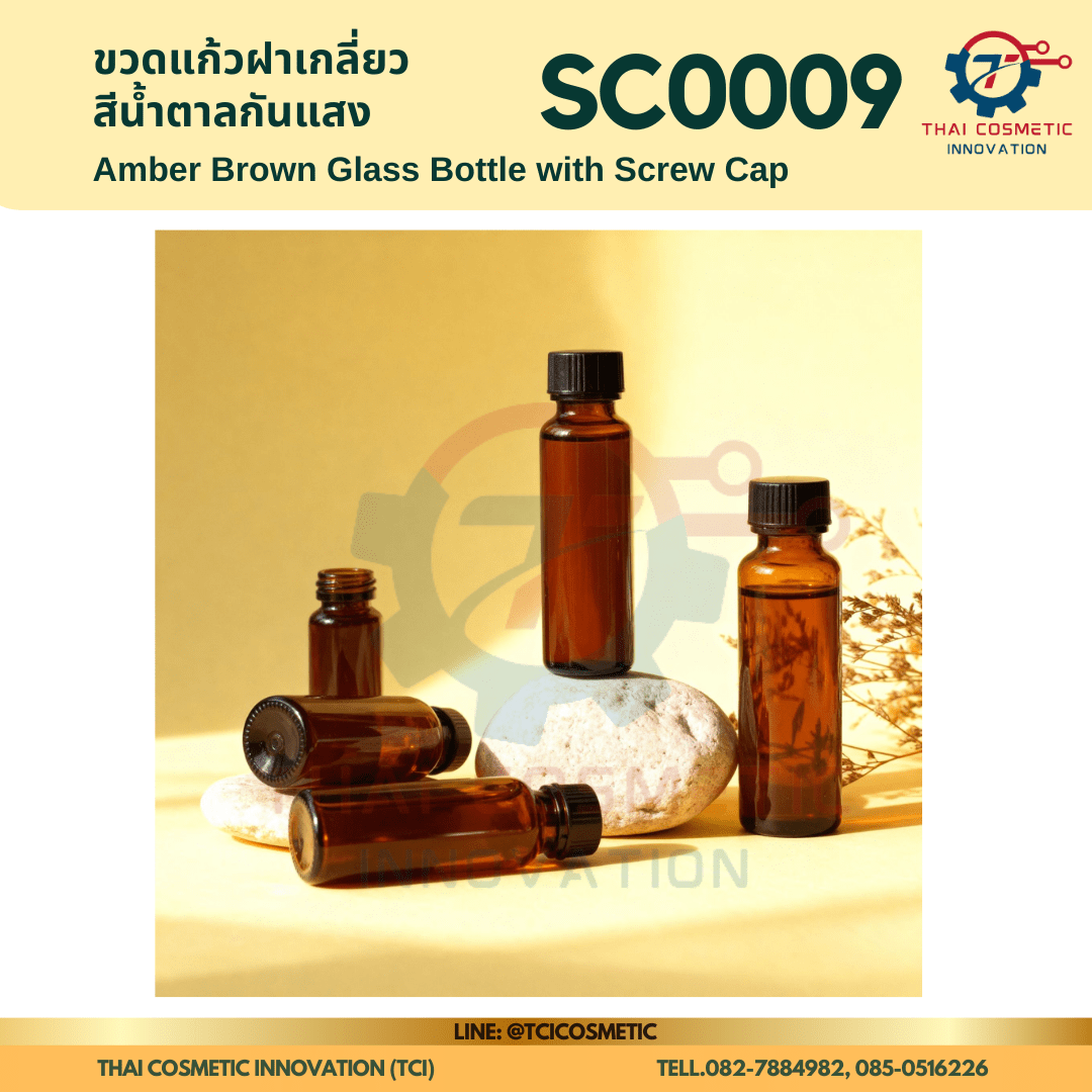 ขวดแก้วฝาเกลียวสีน้ำตาล กันแสง Amber Brown Glass Bottle with Screw Cap SC0009