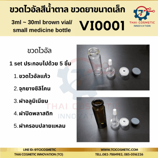 #ขวดไวอัล # vial #ขวดยาขนาดเล็ก #ขวดยา #ขวดvial น้ำตาล #/ฝาครอบปลายแหลม #จุกยางซิลิโคน #ฝาครอบอลูมิเนียม #ฝาครอบขวดยา