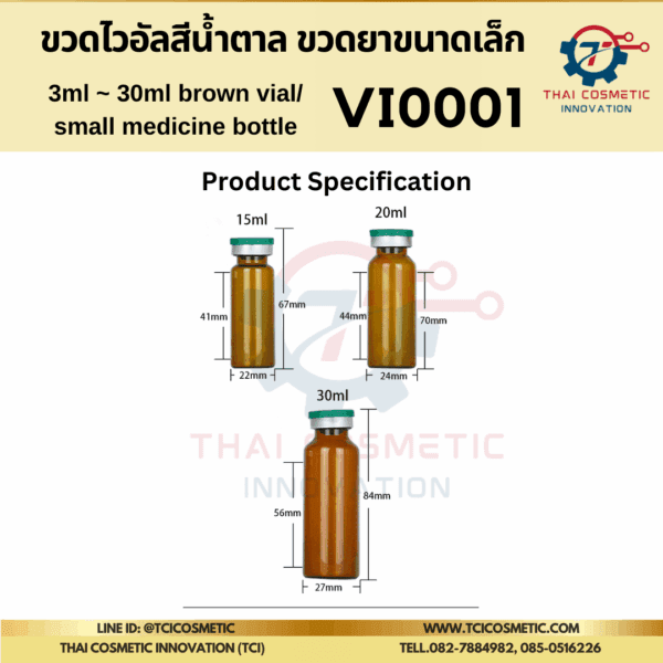 ขวด vial สีน้ำตาล 3 – 30 ml VI0001